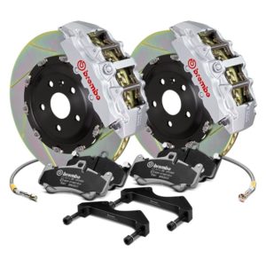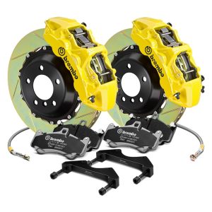 GT Series Slotted Rotor Brake Kit by Brembo®. Rotor Type: 2-Piece, Quantity: 1 Pair. Upgrade your OE (Original Equipment) brakes to Brembo, the world’s finest braking system. With Brembo you’ll get improved pedal feel, modulation, and control of braking performance from initial application through ABS intervention. Large diameter rotors and rigid, fixed multi-piston calipers greatly improve brake performance, heat dissipation and reduce brake fade. This kit is easy to install and will work seamlessly with your factory master cylinder, ABS, and traction control system.